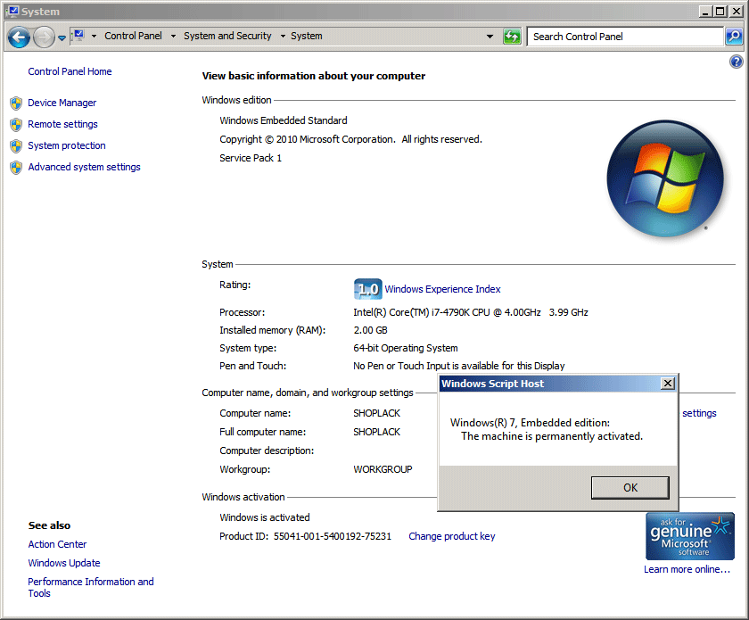 Microsoft Windows® Embedded POSReady 7 (POS = Point of Service) is a cheaper version of Windows 7 that has been optimized for retail point-of-service (POS) devices. POSReady 7 is based on Windows 7 (POSReady 2009 on XP Professional). Point of Service delivers improved customer service through the use of flexible devices such as self-checkout stations, self-service kiosks, information kiosks, food ordering kiosks, and more.