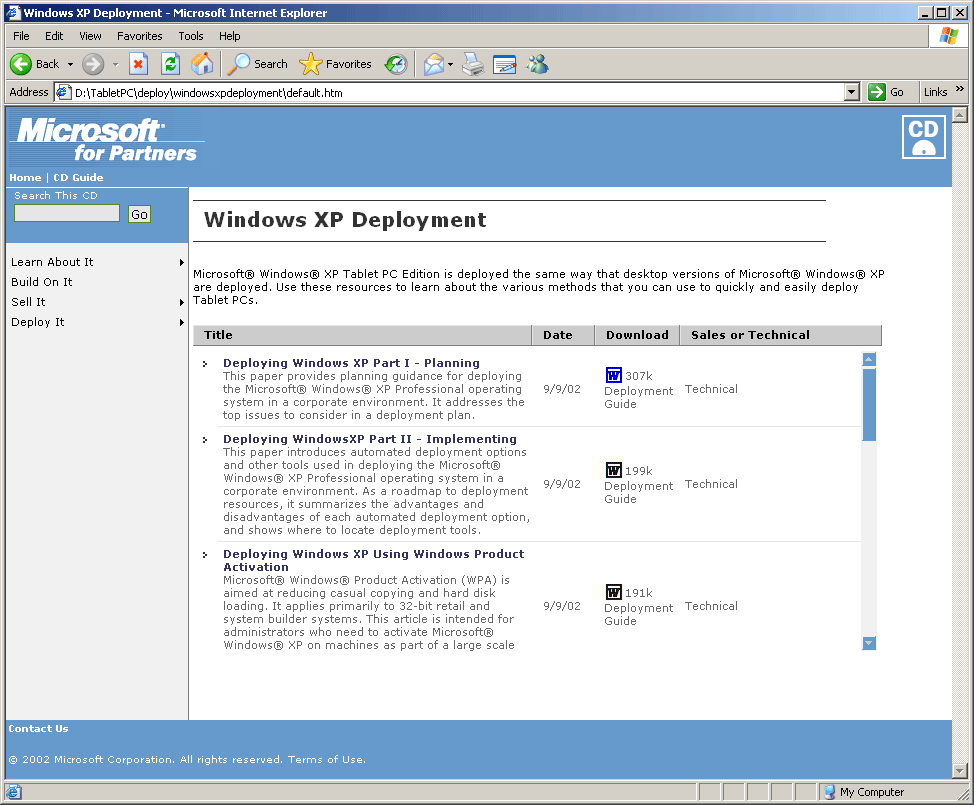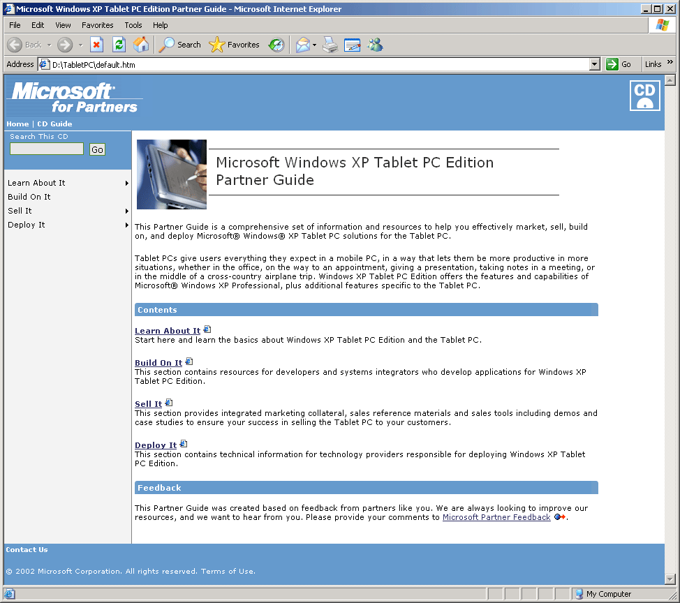 This Partner Guide is a comprehensive set of information and resources to help you effectively market, sell, build on, and deploy Microsoft® Windows® XP Tablet PC solutions for the Tablet PC.